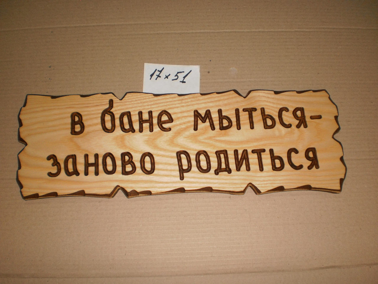 Виготовляються в ручну, методом фрезерування з подальшим шліфуванням і фарбуванням, з використанням тільки літер і цифр (без малюнків). По периметру — декоративні рвані краї "під старовиною". Можливе виготовлення за індивідуальним замовленням (+30% вартості). Повний список стандартних написів: 1. Баню ширяють — здоров'я дарує. 2. Баня змиє, шайка сполосне. 3. Баня без пива — пара назовні. 4. Баня парить, лазня править. 5. Береги воду ! Пей пиво. 6. Баня — купель здоров'я. 7. Баня — влада чистоти. 8. Був би віник, спина знайдеться. 9. Без віника не входить! 10. Баня та горілка — наша знахідка. 11. Великий живіт не від пива, а для пива. 12. Баню будь-яку хворобу з тіла гонять. 13. Баня без віника, що стіл без солі. 14. Баня всігріхи змиє. 15. Без віника лазня не парить, а пара не смажить. 16. Баня без пари, що щи без навару. 17. У лазні віник дорожчий за гроші. 18. Віник у лазні всім болт. 19. До лазня йти — пара не боїться. 20. У лазні генералів немає. 21. У лазні митися — заново народитися. 22. Віник у лазні не перешкода — віник російському утеху. 23. У нашій лазні дівчата краше! 24. Грязь не сало — потер, відстало. 25. Дух парний, дух священний. 26. Запашна пара не тільки тіло, а й душу лікує. 27. ДОБРО ПОЖАЛОВАТЬ! 28. Душевна банька. 29. Спекотлива пара будь-якої недуги зцілить. 30. Заходьте! Буде жарко! 31. Тут не п'ють молоко. 32. Істина у вині, а здоров'я в лазні. 33. І малий і стар — усі люблять пару. 34. Який день ширяєш, той день не старіється. 35. Краще пузо від пива, ніж горб від роботи. 36. Люби лазню — твою мати. 37. Миється той, кому лінь чесатися. 38.33 до дірки. 39. Попри ремонти, у нашій лазні всі рівні. 40. Немає милішого та найрідшого спекотного баньки моєї. 41. Залиш одяг, весь свій сюди входить. 42. Поддай парок, да лезь на полок. 43. Попарюйся — нестарайся. 44. Пара йде, душ співає. 45. Піддай — замерзнеш. 46. Потіти треба вміти. 47. Пива немає — йдіть у лазню. 48. Платі не ламайся, потім насолоджуйся. 49. Пара любити — лазню топити. 50. Пара кісток не ломіт, ось душі не гонять. 51. ПАРИЛАККА 52. ПАРЬСЯ ОТ ДУШИ! 53. Парять тіло, запарює душу. 54. Рука руку миє, з ногами складніше. 55. Російська баня — народний лекар. 56. Снігом та парою, так не будеш старим. 57. З легкою парою, з гарячим самоваром. 58. Найгарніші жінки водяться в саунах. 59. Тілу жар, душі пар. 60. Табак да кабак , баба да баня одна забава. 61. Тільки в російській лазні можна побачити справжньогоsk. 62. Така парка, що небу жарко. 63. Ум у лазні не покажеш. 64. Холодне пиво зігріває душу. 65. Гарна лазня краща за ситний обід. 66. Чим ширші наші морди, тим тепліші наші лави. 67. Чистого блохи бояться. 68. Best Sauna 69. WELСOME