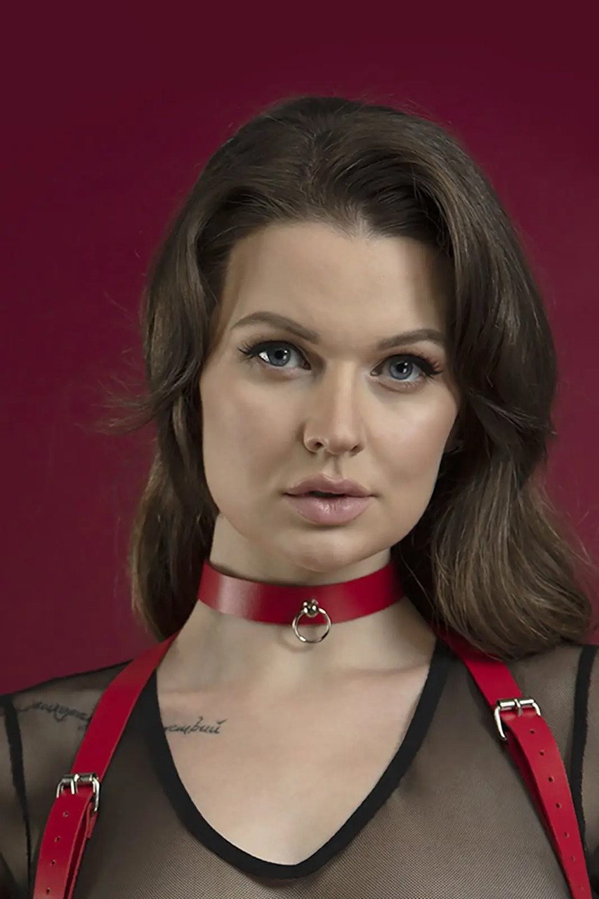 Червоний шкіряний елегантний чокер з кільцем для повідця. Можна використовувати як стильну прикрасою, і як нашийник Застібається на пряжці позаду і легко регулюється за об’ємом шиї. Розмір універсальний. Виготовлений з високоякісної шкіри рослинного дублення та доповнений стильною сріблястою фурнітурою.